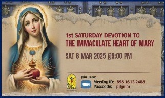 1st Saturday Devotion to The Immaculate Heart of Mary Sat 8 mar 2025 9PM